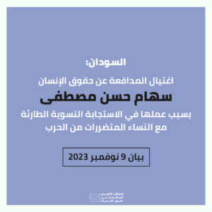 السودان: اغتيال المدافعة عن حقوق الإنسان سهام حسن مصطفى بسبب عملها في الاستجابة النسوية الطارئة مع النساء المتضررات من الحرب